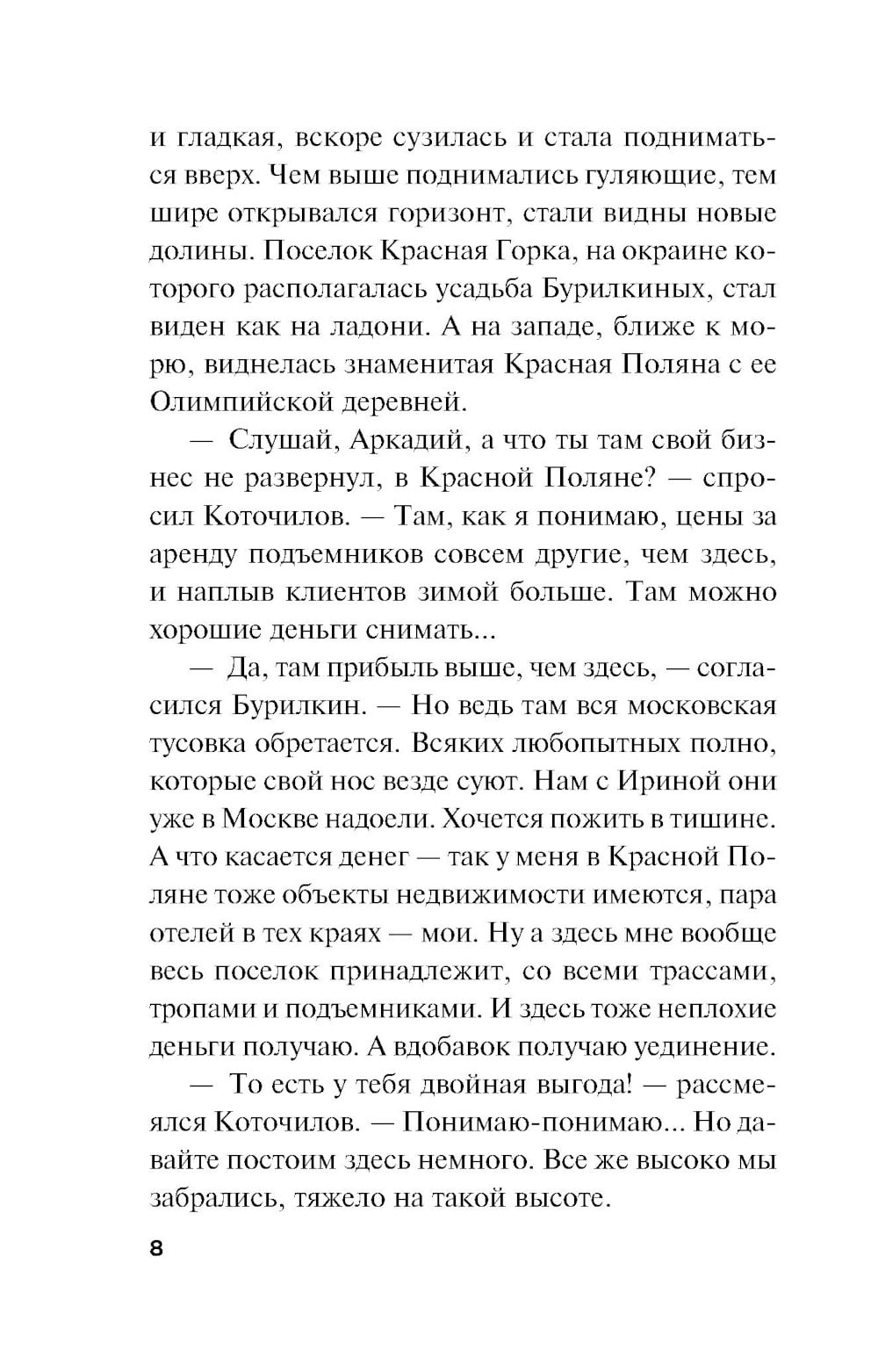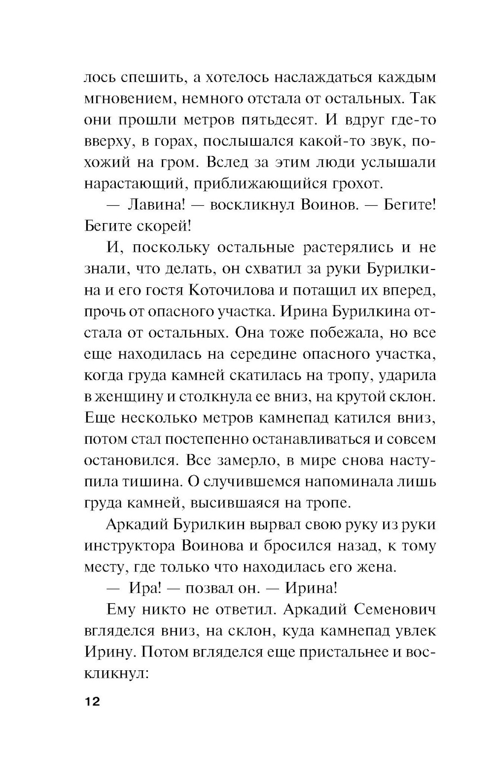 Во время прогулки в горах из-за внезапного камнепада погибает жена миллиардера Аркадия Бурилкина Ирина. По версии полиции, произошел несчастный случай. Однако миллиардер уверен: это было покушение на него, организованное конкурентами по бизнесу, а Ирина стала случайной жертвой. Полковники МВД Гуров и Крячко, ознакомившись с обстоятельствами дела, вынуждены согласиться с Бурилкиным - камнепад был подстроен. Подозреваемых исполнителей берут под стражу. Дело можно закрывать... Но именно в этот момент, и снова в результате камнепада, погибает управляющий имением миллиардера. Выходит, преступник по-прежнему на свободе. Возобновленное расследование приводит сыщиков к ошеломительному заключению... Николай Леонов, в прошлом следователь МУРа, не понаслышке знал, как раскрываются самые запутанные уголовные дела. Поэтому каждая его книга - это правдивая захватывающая история с непредсказуемой интригой и неожиданным финалом. Главный герой этих книг, полковник Лев Гуров - сыщик высокого класса, к тому же с массой положительных человеческих качеств. Его уважают друзья, боятся враги и любят женщины. Он - настоящий отечественный супермен. Романы о Льве Гурове вот уже сорок лет неизменно привлекают поклонников отечественного детектива. Ставшая классической серия «Черная кошка» насчитывает более 200 книг, вышедших тиражом в десятки миллионов экземпляров.| Издательство | Эксмо |