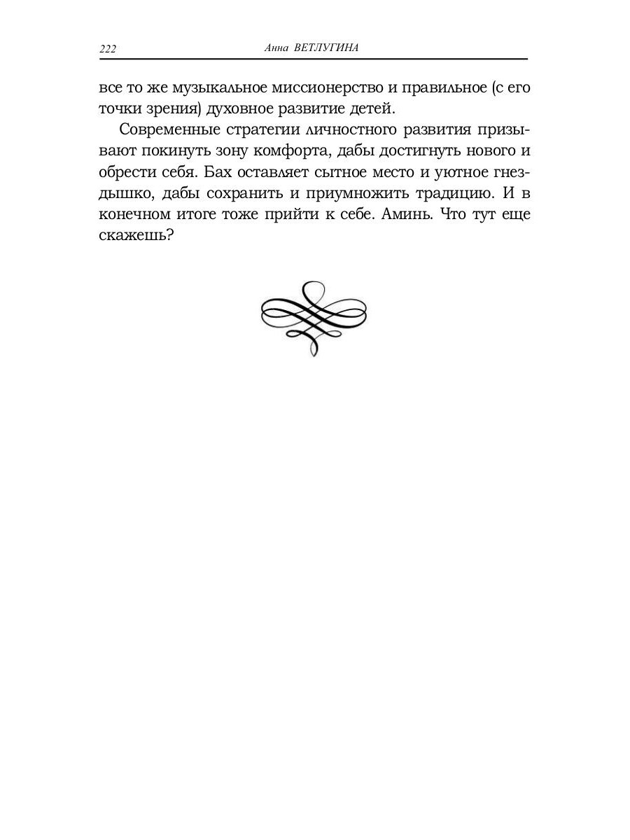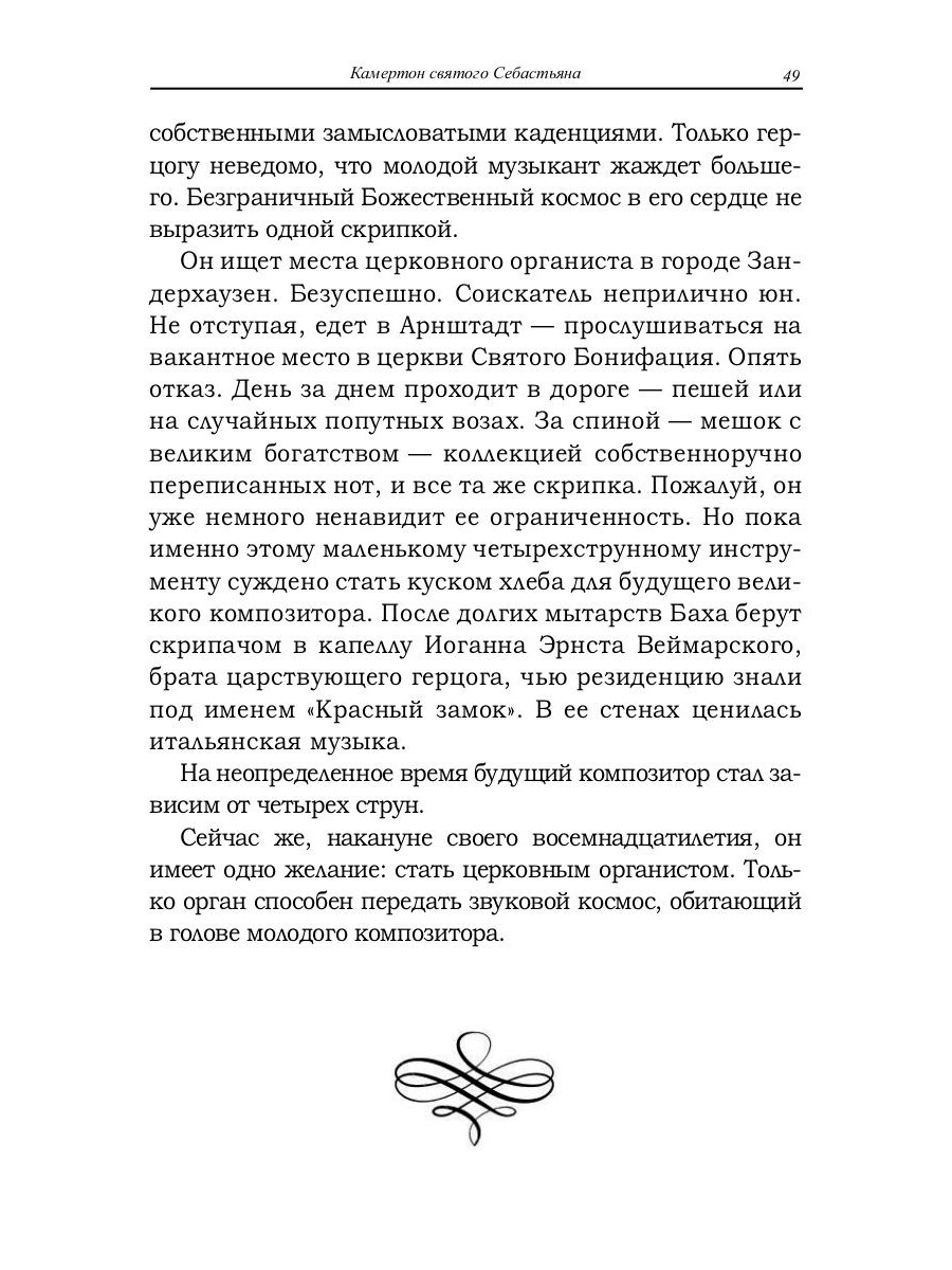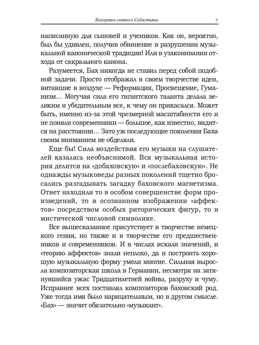 Жизнь великого композитора, называемого еще в XVIII веке святым от музыки, небогата событиями. Вопреки этому, Баху удавалось неоднократно ставить в тупик своих биографов. Некоторые его поступки кажутся удивительно нелогичными. И сам он - такой простой и обыденный, аккуратно ведущий домашнюю бухгалтерию и воспитывающий многочисленных детей - будто ускользает от понимания. Почему именно ему открылись недосягаемые высоты и глубины? Что служило Мастеру камертоном, по которому он выстраивал свои шедевры? Эта книга написана не для профессиональных музыкантов и уж точно - не для баховедов. Наука, изучающая творчество величайшего из композиторов, насчитывает не одну сотню томов. Лучшие из них - на немецком языке. Глупо было бы пытаться соперничать с европейскими исследователями по части эксклюзивности материалов. Такая задача здесь и не ставится. Автору хотелось бы рассказать не только о великом человеке, но и о среде, его взрастившей. О городах, в которых он жил, о людях, оказавших на него влияние, и об интересных особенностях его профессии. Рассказать не абстрактным людям, а своим соотечественникам - любителям музыки, зачастую весьма далеким от контекста западноевропейских духовных традиций.| Издательство | Т8 RUGRAM |