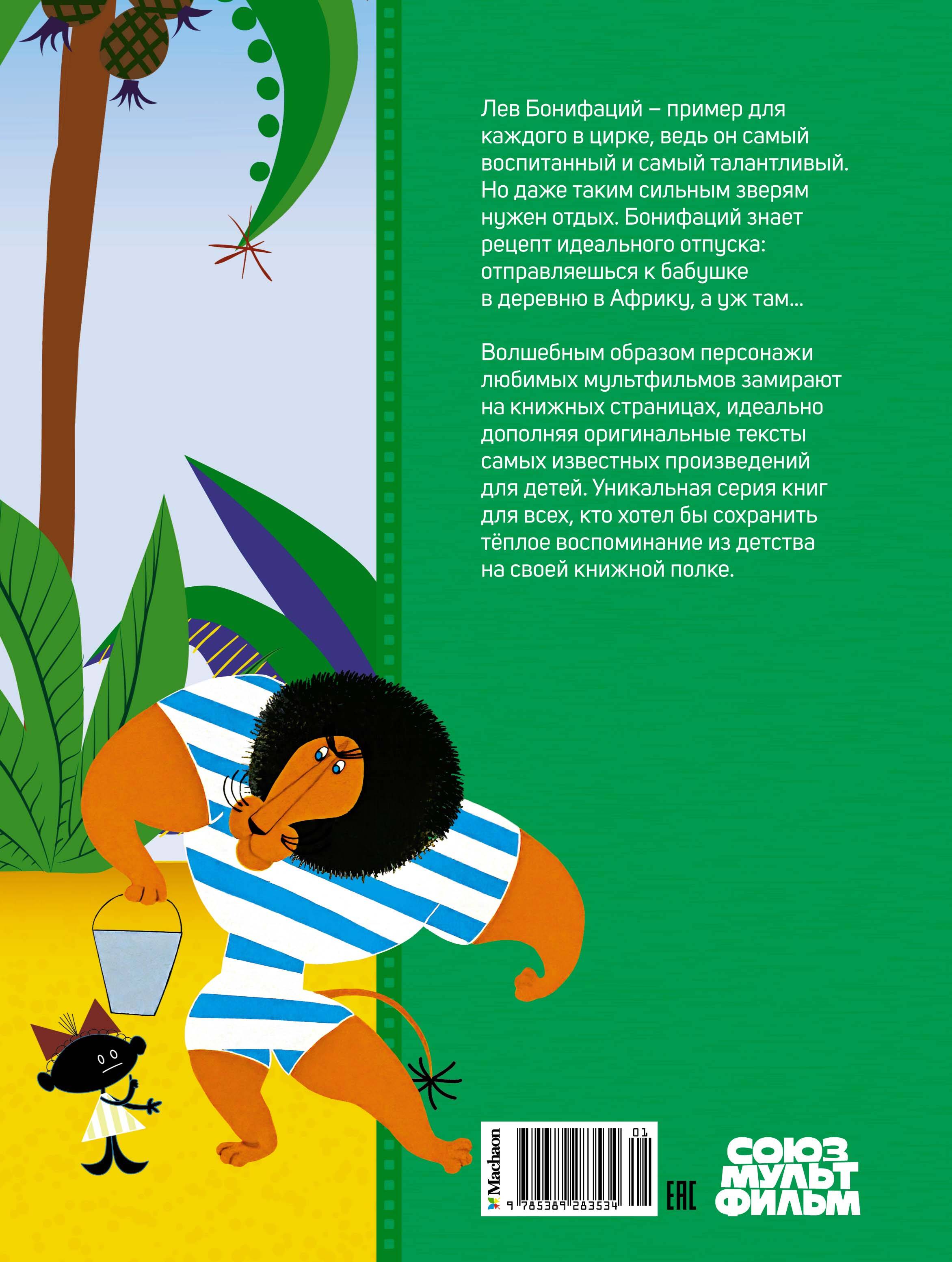 Лев Бонифаций - пример для каждого в цирке, ведь он самый воспитанный и самый талантливый. Но даже таким сильным зверям нужен отдых. Бонифаций знает рецепт идеального отпуска: отправляешься к бабушке в деревню в Африку, а уж там… Волшебным образом персонажи любимых мультфильмов замирают на книжных страницах, идеально дополняя оригинальные тексты самых известных произведений для детей. Уникальная серия книг для всех, кто хотел бы сохранить тёплое воспоминание из детства на своей книжной полке. Эта серия - прекрасная классика для детей, которая идеально подойдет как для внеклассного чтения, так и в качестве подарка на окончание учебного года. Все книги выходят с красивыми цветными иллюстрациями на белой плотной бумаге.| Издательство | Издательство АЗБУКА ООО |