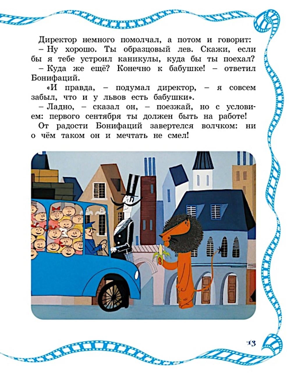 Лев Бонифаций - пример для каждого в цирке, ведь он самый воспитанный и самый талантливый. Но даже таким сильным зверям нужен отдых. Бонифаций знает рецепт идеального отпуска: отправляешься к бабушке в деревню в Африку, а уж там... Волшебным образом персонажи любимых мультфильмов замирают на книжных страницах, идеально дополняя оригинальные тексты самых известных произведений для детей. Уникальная серия книг для всех, кто хотел бы сохранить тёплое воспоминание из детства на своей книжной полке. Эта серия - прекрасная классика для детей, которая идеально подойдет как для внеклассного чтения, так и в качестве подарка на окончание учебного года. Все книги выходят с красивыми цветными иллюстрациями на белой плотной бумаге.| Издательство | Махаон |