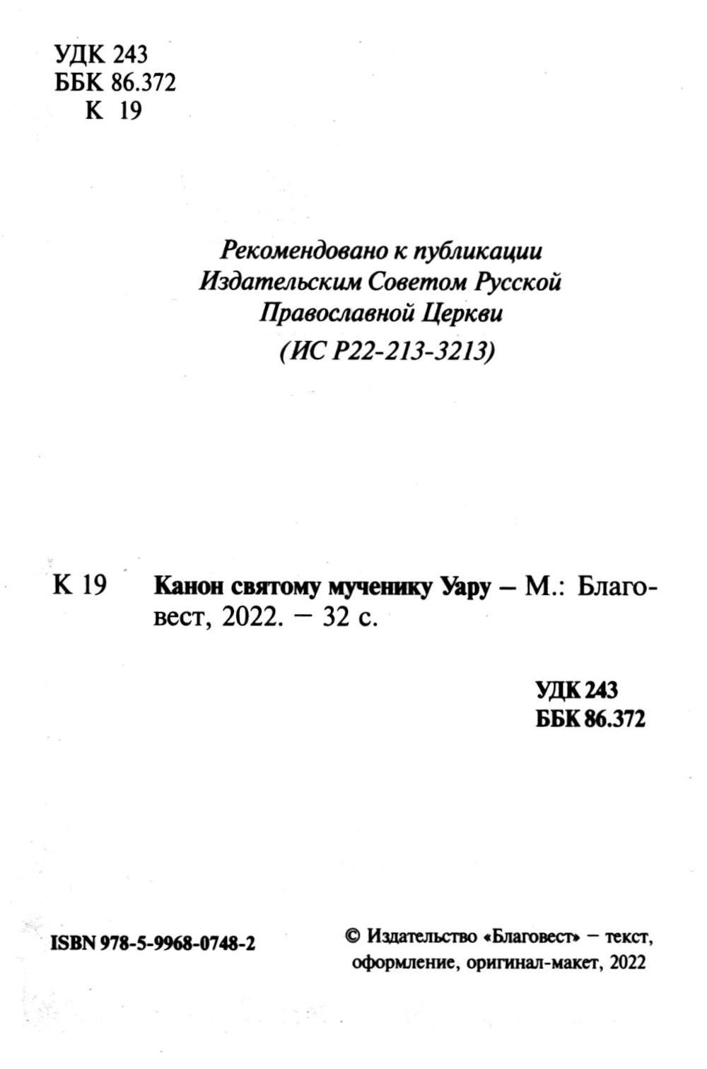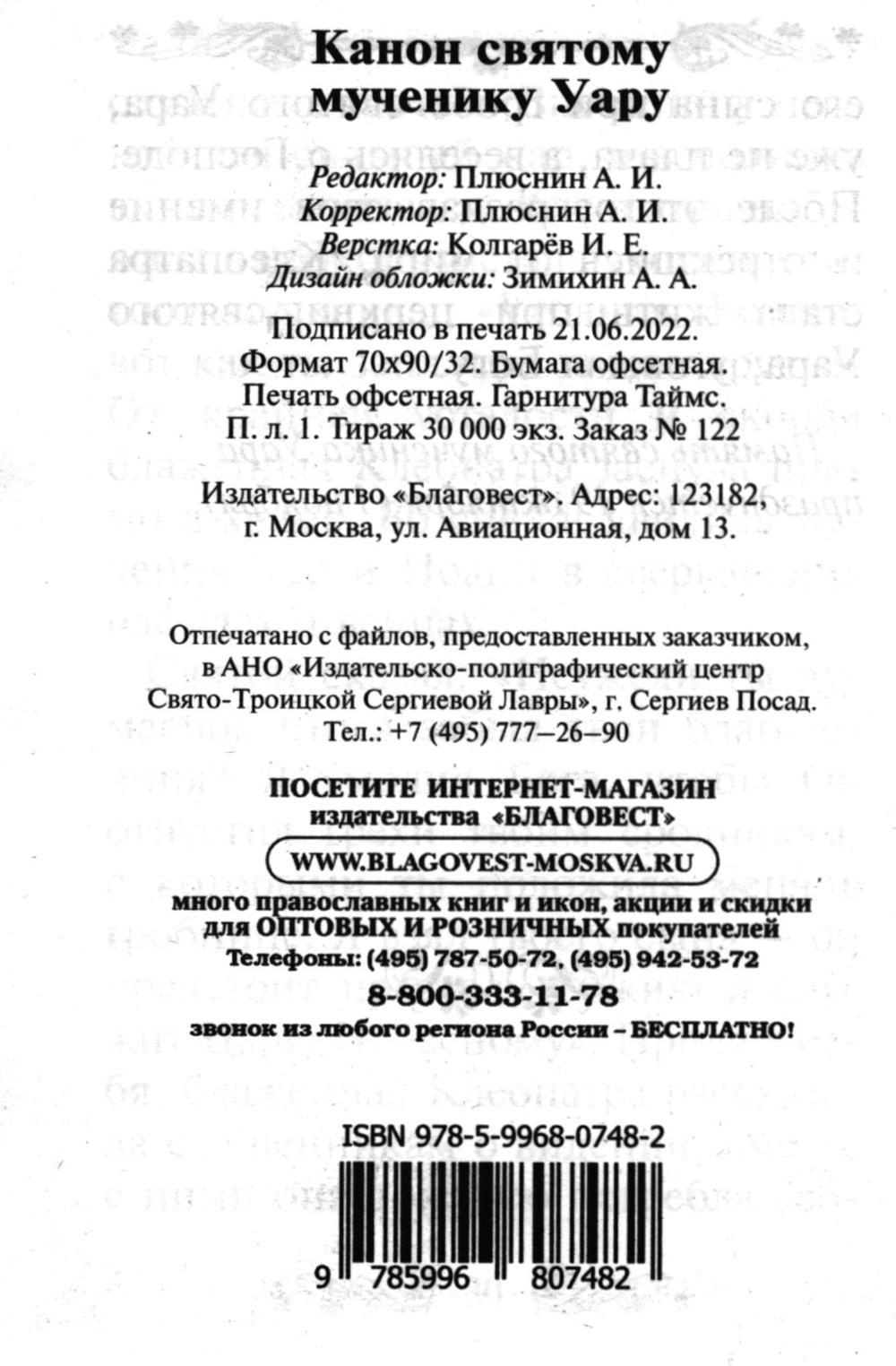 Аннотация: Канон святому мученику Уару