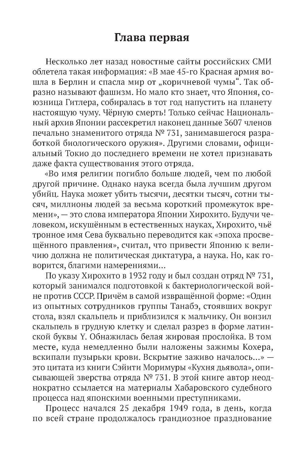 Какие чудовищные тайны скрывал японский отряд 731? Как далеко могла зайти Япония в подготовке бактериологической войны против СССР? Почему Хабаровский процесс стал единственным открытым судом над военными преступниками, связанными с биологическим оружием? Что связывает биолаборатории США с опытом японских милитаристов? Александр Наумов раскрывает почти забытый фронт Второй мировой - невидимую битву за контроль над смертоносными вирусами. Документальные свидетельства, шокирующие детали экспериментов над живыми людьми, политические сделки, оставшиеся в тени официальных приговоров - всё это формирует мрачную мозаику событий, долго замалчивавшихся Западом. Читатель шаг за шагом проследит, как научные амбиции обернулись системой массовых убийств, а жестокость прикрывалась благородными словами о медицине и патриотизме. Издание рекомендуется всем, кто интересуется подлинной историей Второй мировой войны, скрытыми преступлениями того времени и международной закулисной политикой.| Издательство | Концептуал |