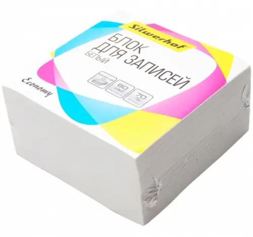 Блок для записей бумажный "Silwerhof. Эконом", цвет: белый, 90х90х45 мм, арт. 701023