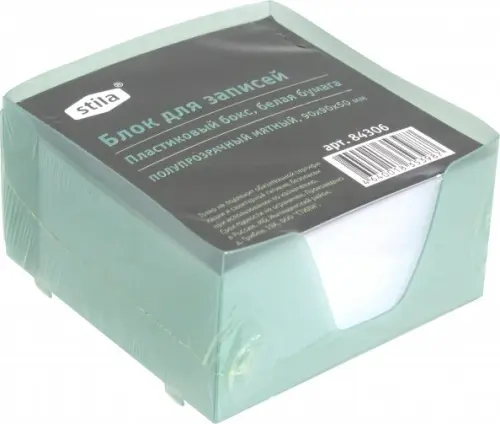 Блок для записей, полупрозрачный пластиковый бокс, мятный