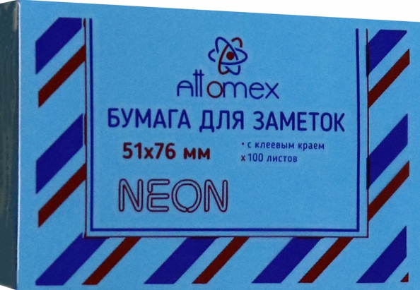 Клейкая бумага для заметок "Attomex" 51x76 мм, 100 листов, офсет 75 г/м2, неоновая голубая
