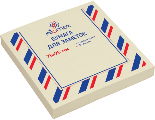 Клейкая бумага для заметок "Attomex" 76x76 мм, 100 листов, офсет 75 (70) г/м?, желтая