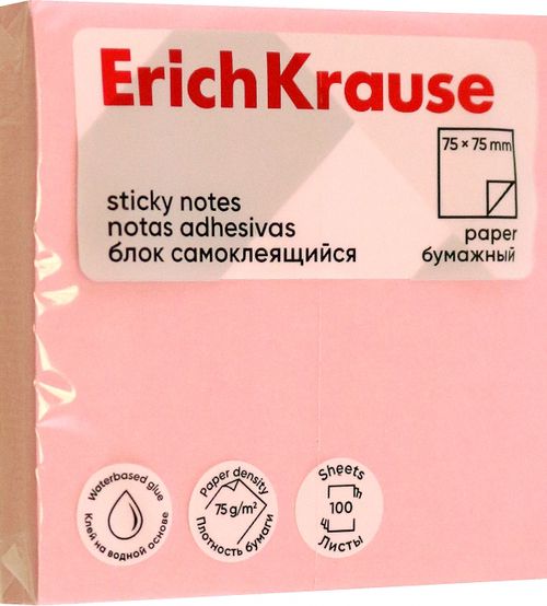 Блок самоклеящийся бумажный ErichKrause удобен для записи напоминаний и коротких сообщений. Клеевой слой на водной основе обеспечивает надежную фиксацию и возможность многократного переклеивания, не оставляя следов. Используется высококачественная бумага плотностью 75 г/м2. Размер листа - 75х75 мм. В упаковке 100 листов розового цвета.