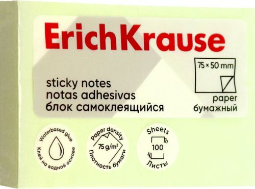 Блок самоклеящийся бумажный ErichKrause удобен для записи напоминаний и коротких сообщений. Клеевой слой на водной основе обеспечивает надежную фиксацию и возможность многократного переклеивания, не оставляя следов. Используется высококачественная бумага плотностью 75 г/м2. Размер листа - 50х75 мм. В упаковке 100 листов зеленого цвета.