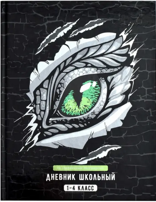 Дневник школьный 1-4 класс, ГЛАЗ ДРАКОНА формат А5+, 48 л., твёрдый переплёт 7БЦ. Обложка: мелованная бумага 150 г/м?, полноцветная печать, печать по фольге, глянцевая ламинация, дизайнерский форзац , углы обложки прямые, углы блока прямые, красочность форзаца: полноцветная печать, красочность блока: печать в одну краску (пантон) . Блок: бумага - белый офсет, 65 г/м?, шпаргалка для младших классов.