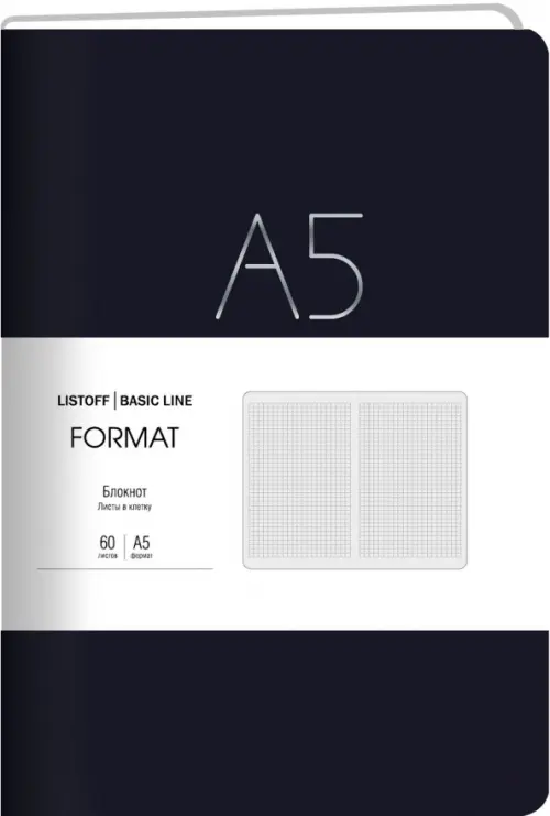Бизнес - блокнот "Format" Listoff А5 формата - универсальный помощник в деловой и повседневной жизни. Лаконичный дизайн в классических цветовых решениях, мягкая обложка из искусственной кожи с эффектом "нубук" и декоративным элементом, выполненный фольгой "серебро", а также плотная бумага внутреннего блока мотивирует пользоваться блокнотом каждый день. Классическая "клетка" для простых повседневных записей и заметок.