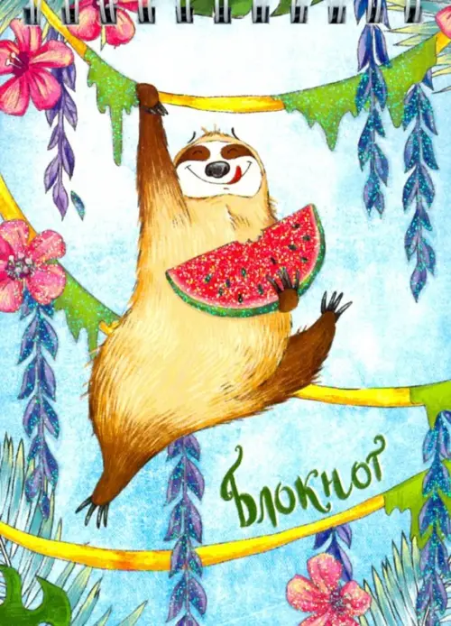Блокнот Ленивец с арбузом, 80 листов, А6, клетка