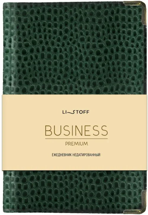 Ежедневник премиум-класса коллекции Business Premium от компании "Канц-Эксмо" снабжен всем необходимым для планирования. Переплет ежедневника из коллекции Business Premium выполнен из термоактивного итальянского материала с имитацией кожи. Красивый дизайн и компактный формат ежедневника делают его достойным аксессуаром, который можно всегда брать с собой. Формат: А6. Количество листов: 152. Внутренний блок: недатированный. Тип бумаги: кремовый офсет. Особенности: закладка-ляссе, тонированный обрез, металлические уголки. Тип скрепления: книжная прошивка. Тип обложки: твердый переплет с поролоном. Материал обложки: искусственная кожа. Цвет обложки: зеленый.