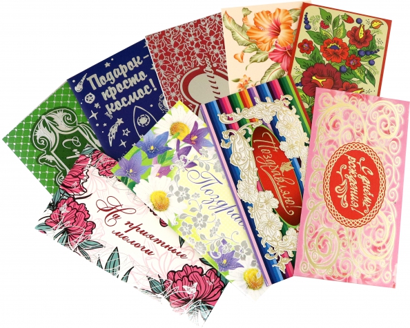 Набор конвертов для денег. В наборе 9 конвертов. Материал: плотный картон. Особенности: часть конвертов содержит поздравительные стихи.