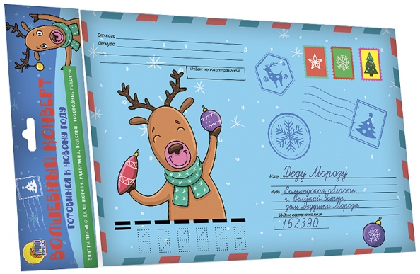 Внутри этого волшебного конверта малыш найдёт всё необходимое для подготовки к празднику.