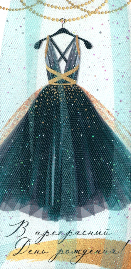 Самый стильный дизайн! Конверт для денег "В прекрасный День рождения!" для самого модного поздравления. Конверт обернут в бирюзовый фатин со стразами, дополняющий цветовую гамму композиции.