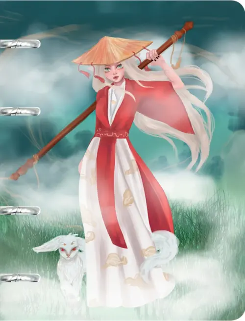Тетрадь на кольцах Девушка в кимоно, 100 листов, клетка