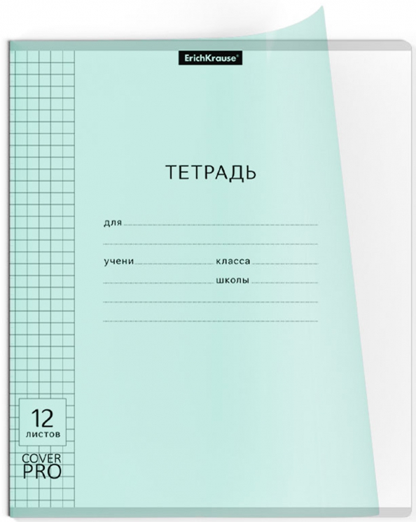 Тетрадь Классика CoverPrо Pastel, А5+, 12 листов, клетка, с пластиковой обложкой, мятный