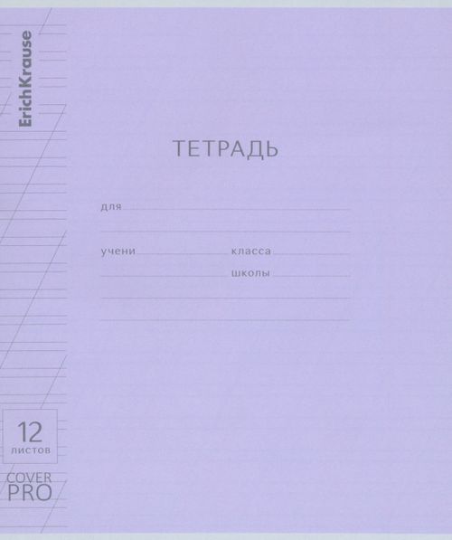 Тетрадь школьная ученическая формата А5+ (170x203 мм). Двойная обложка: внешняя выполнена из высококачественного износостойкого прозрачного пластика с фактурой «апельсиновая корка», внутренняя - из качественной мелованной бумаги. В блоке 12 листов в косую линейку. Бумага офсетная плотностью 60 г/м2. Цвет линовки - синий. Скругленные уголки обложки и блока. Тип скрепления - скоба.