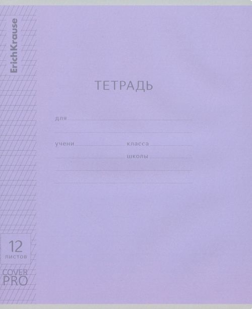 Тетрадь школьная ученическая формата А5+ (170x203 мм). Двойная обложка: внешняя выполнена из высококачественного износостойкого прозрачного пластика с фактурой «апельсиновая корка», внутренняя - из качественной мелованной бумаги. В блоке 12 листов в частую косую линейку. Бумага офсетная плотностью 60 г/м2. Цвет линовки - синий. Скругленные уголки обложки и блока. Тип скрепления - скоба.