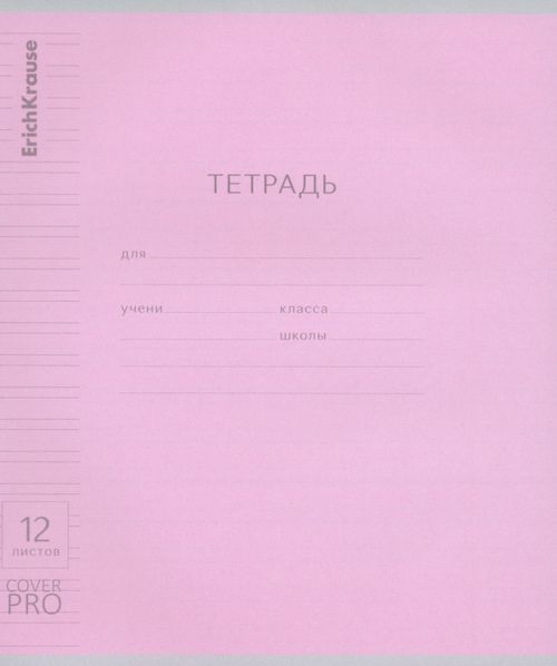 Тетрадь школьная ученическая формата А5+ (170x203 мм). Двойная обложка: внешняя выполнена из высококачественного износостойкого прозрачного пластика с фактурой «апельсиновая корка», внутренняя - из качественной мелованной бумаги. В блоке 12 листов в узкую линейку. Бумага офсетная плотностью 60 г/м2. Цвет линовки - синий. Скругленные уголки обложки и блока. Тип скрепления - скоба.