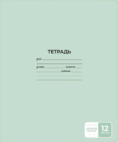 Тетрадь Светло-зеленая, А5+, 12 листов, крупная клетка