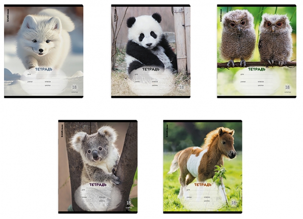 Тетрадь школьная ученическая Пушистики, 18 листов, клетка, в ассортименте, 10 штук