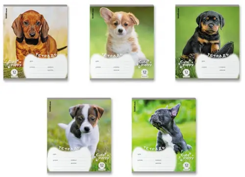 Тетрадь школьная ученическая Щенки, 12 листов, клетка, в ассортименте, 10 штук