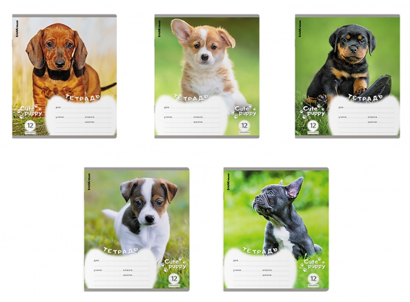 Тетрадь школьная ученическая Щенки, 12 листов, линейка, в ассортименте, 10 штук