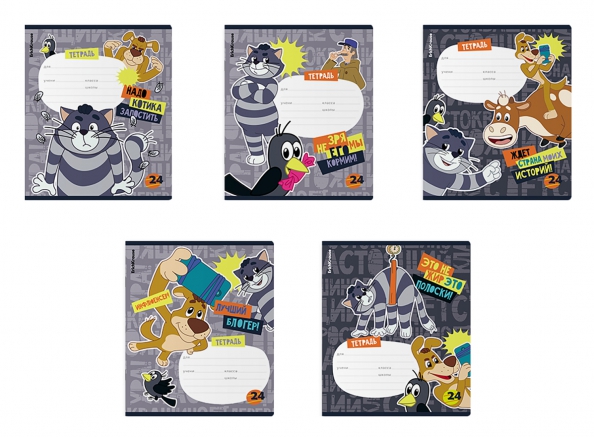 Тетрадь школьная ученическая Простоквашино, 24 листа, линейка, в ассортименте, 10 штук