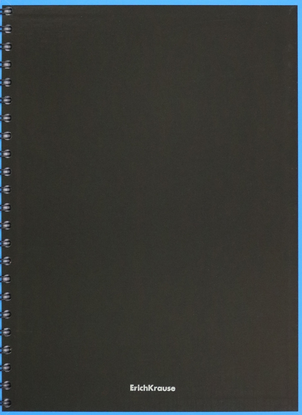 Тетрадь общая ученическая формата А4 (210х297 мм). Элегантный дизайн построен на контрасте черной внешней стороны обложки и яркой внутренней. Обложка из жесткого ламинированного картона с фактурным тиснением "лён". В блоке 120 листов в клетку. Бумага офсетная плотностью 60 г/м2. Цвет линовки - синий. Тип скрепления - спираль.