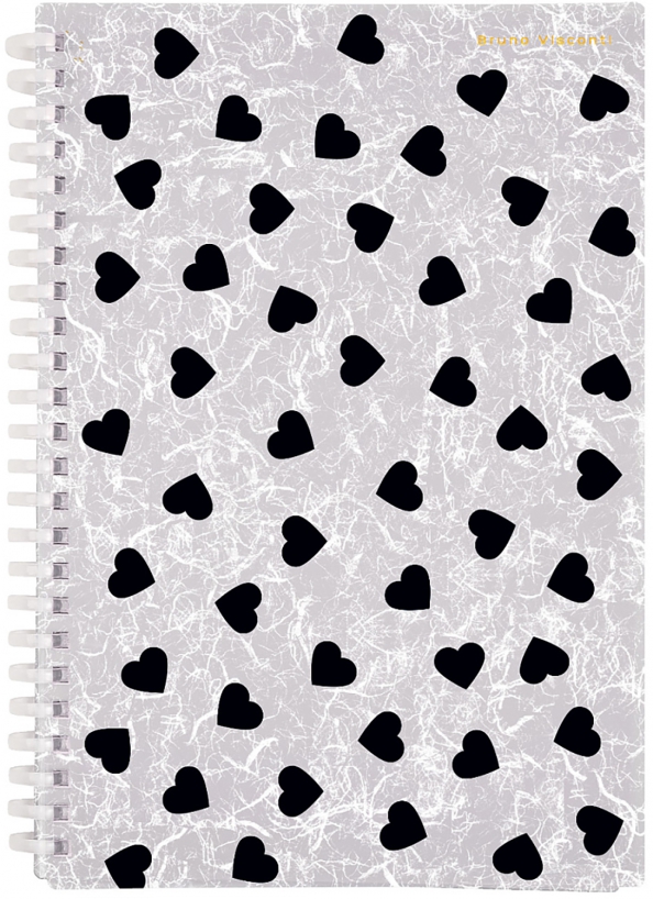 Тетрадь на силиконовом гребне "Black&White. Сердечки" от Bruno Visconti в клетку для ведения записей различного характера.