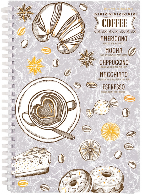 Тетрадь Caffe nero.Time, 60 листов, клетка, силиконовый гребень