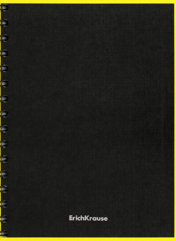 Тетрадь общая формата А5 (147х205 мм). Элегантный дизайн построен на контрасте черной внешней стороны обложки и яркой внутренней. Обложка из жесткого ламинированного картона с фактурным тиснением "лён". В блоке 120 листов в клетку. Бумага офсетная плотностью 60 г/м2. Цвет линовки - синий. Тип скрепления - спираль.