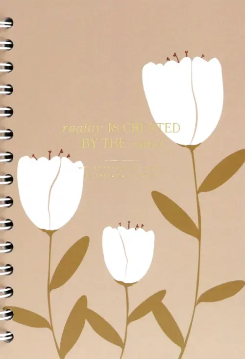 Твердая обложка. Сверху: мелованная бумага, печать 4+4, ламинация, микротекстурирование. Спираль сбоку. Внутренний блок: офсетная печать, бумага 100 белизны, 65г/м2, скругление углов. Дизайн внутреннего блока "в клетку". Особенности: тиснение золотой фольгой.