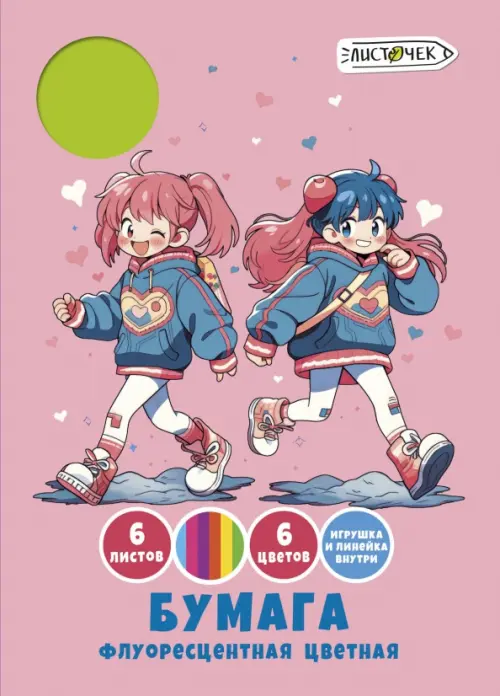Бумага цветная флуоресцентная Подружки, 6 листов, 6 цветов