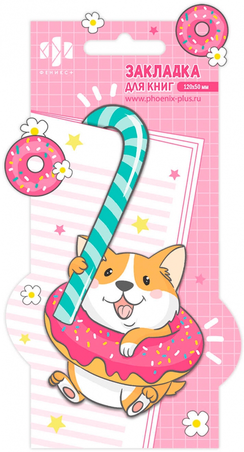 Закладка для книг фигурная арт. 65146 / 160 КОРГИ (1 шт. в наборе, размер 67х120 мм, материал: мелованный картон; цвет: зелёный, оранжевый, розовый, декор: матовая ламинация, полноцветный дизайн, фигурная вырубка, индивидуальная упаковка: подложка из мелованного картона + ПЭТ-пакет с европодвесом)