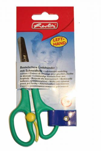 Ножницы с самопоглотительным механизмом. Ножницы с отключенным механизмом захвата самопонимания, который открывает ножницы после каждого влюбления. Эргономичное кольцо формы. Лезвия из нержавеющей стали с закругленными концами. Имел в виду для левшей.
