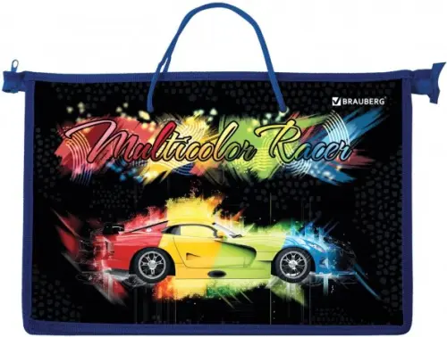 Выполнена из пластика, по краям имеет тканевую окантовку, застежка-молния расположена по верхнему краю папки.