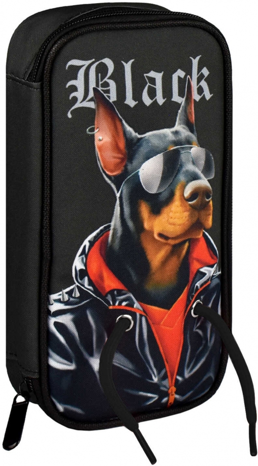 Пенал школьный Феникс+, арт.64169/ 24 ДОБЕРМАН (без наполнения, 10х20х4.5 см, полиэстер, молния, металлические люверсы, сублимационная печать, шнурки,1 отделение, особенности: внутренний карман, ПЭТ-пакет).