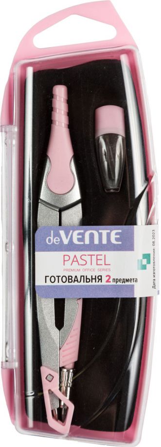 Готовальня "deVENTE. Pastel" (02 предмета) в пластиковом футляре с черным ложементом, цвет футляра - пастельный розовый