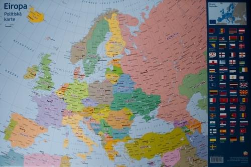Размер 59 х 40 см. Настольный поднос с европейской политической картой 1 см - масштаб 150 км, дополненные флагами европейских стран, имущества и самопровозглашенных стран.