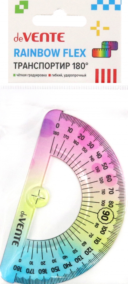 Транспортир "deVENTE. Rainbow Flex" гибкий 180°, полупрозрачный радужный, в блистерной упаковке