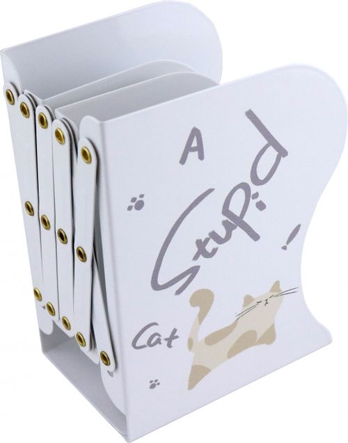 Подставка-лоток для книг:"КОШКИ" металлическая, раздвижная, вертикальная, с 3-мя отделениями имеет скругленные углы, силиконовые бесшумные накладки. Цвет - белый с рисунком "КОШКИ". Размер - 19х10(50)х14 см. Подставка раздвигается от 10 до 50 см, что позв