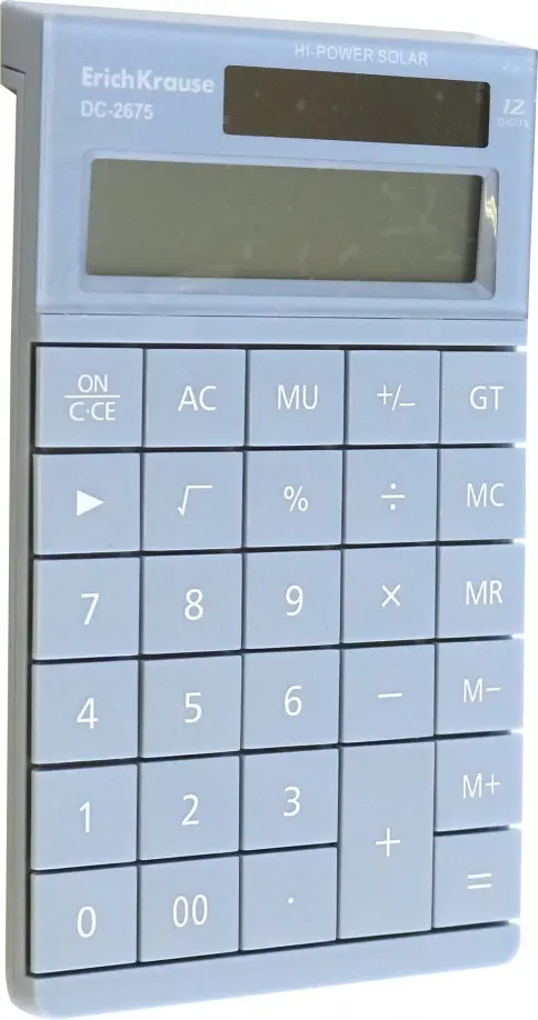 Бухгалтерский калькулятор в пластиковом корпусе с 12-разрядным ЖК - дисплеем. Имеет одноуровневую память. Оптимальный набор вычислительных функций позволяет совершать основные математические операции, рассчитывать проценты, наценку, извлекать квадратный корень, суммировать произведенные операции и запоминать промежуточный результат. Удобная клавиатура снабжена кнопками двойного нуля и удаления последней отображаемой цифры. Для экономии энергии предусмотрены два источника питания: солнечная и алкалиновая батарея, а также функция автоматического выключения.