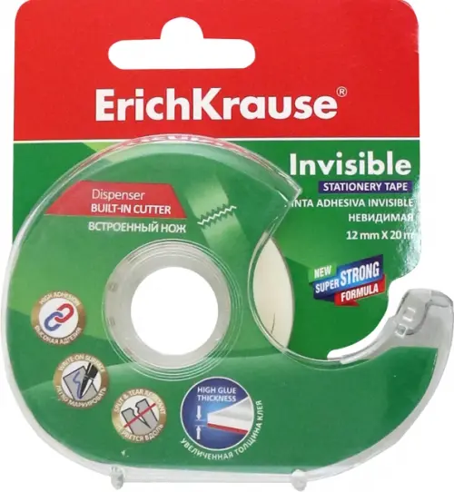 Клейкая лента ErichKrause Invisible, прозрачная с матовой поверхностью, 12ммх20м, в диспенсере