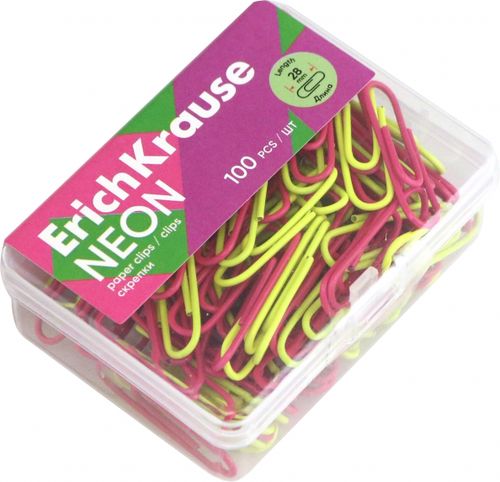 Скрепки металлические с виниловым покрытием Neon, 28 мм, 100 штук, ассорти
