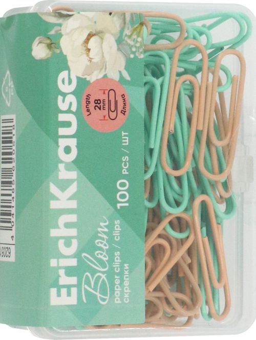 Скрепки металлические с виниловым покрытием Pastel Bloom, 28 мм, 100 штук, ассорти