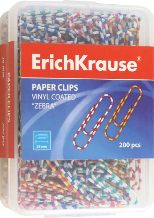 Скрепки металлические с виниловым покрытием Zebra, 28 мм, 200 штук, ассорти