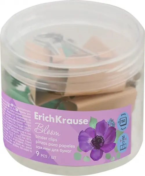 Зажимы для бумаг Pastel Bloom, 32 мм, 9 штук, ассорти