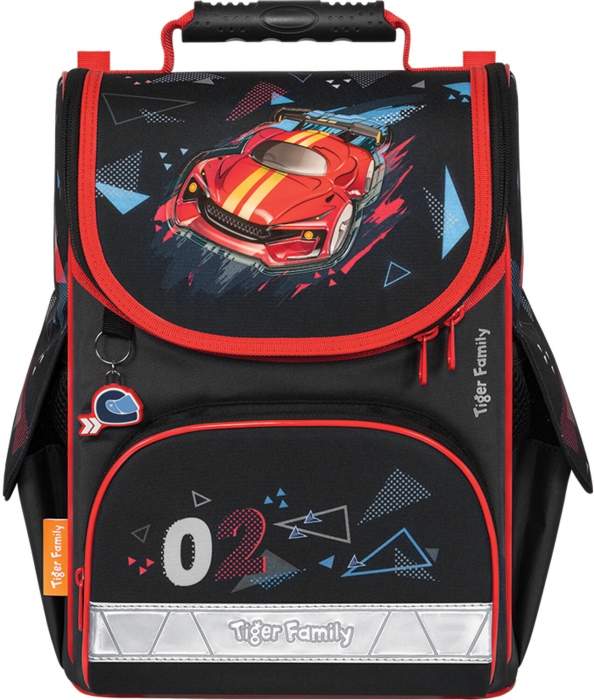 На крышке ранца расположен яркий 3D элемент, привлекающий внимание.
